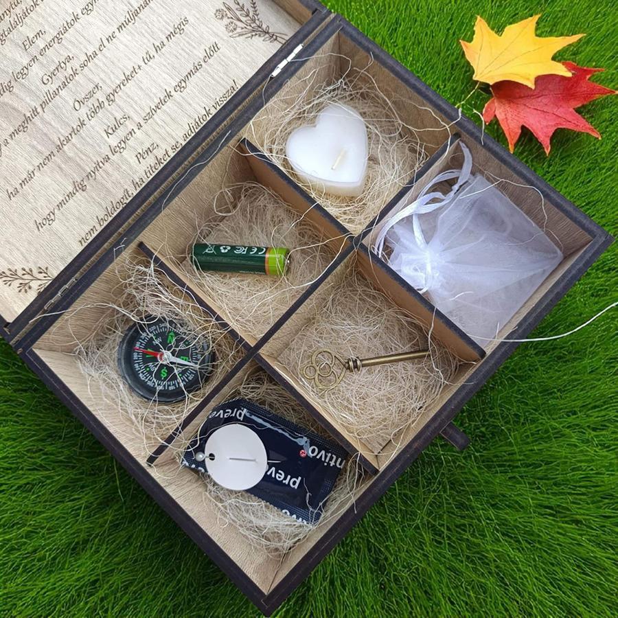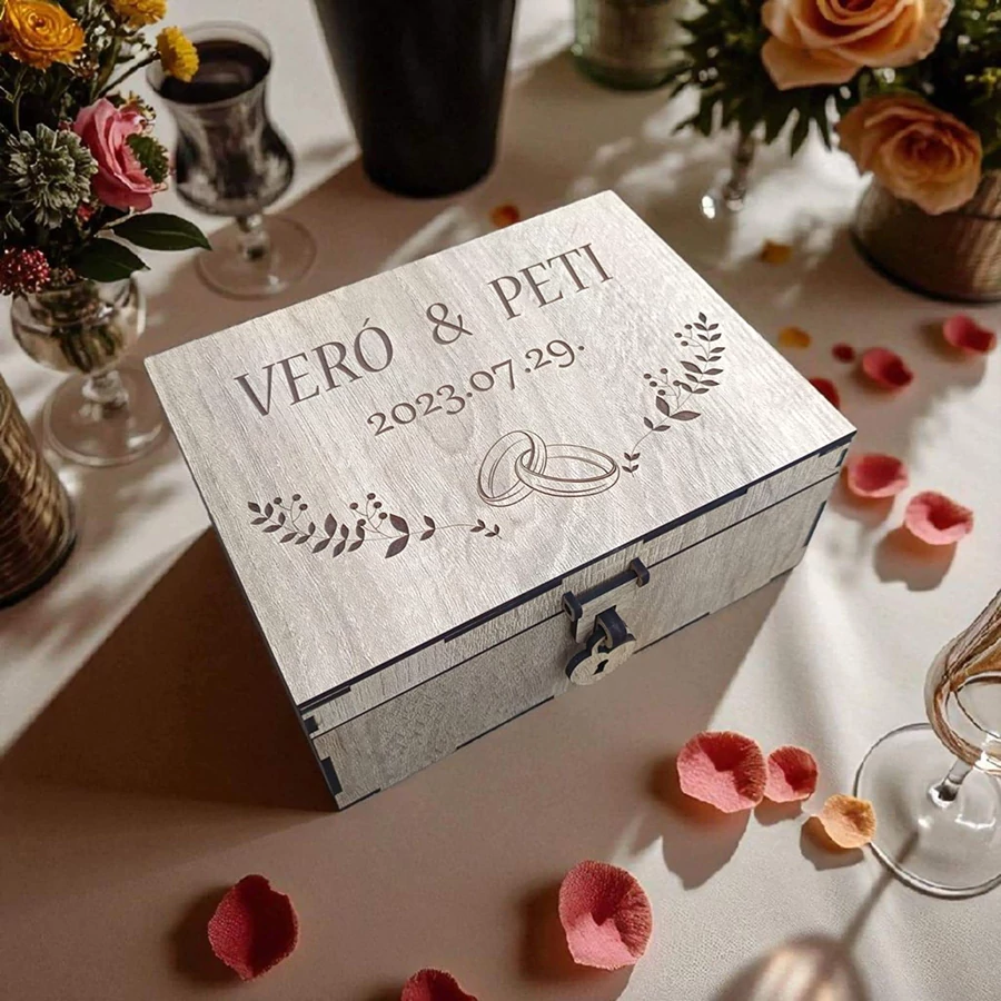 Házasság kellékei doboz – egyedi gravírozott ajándék esküvőre