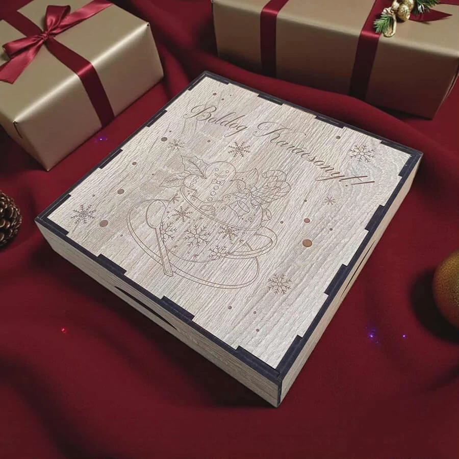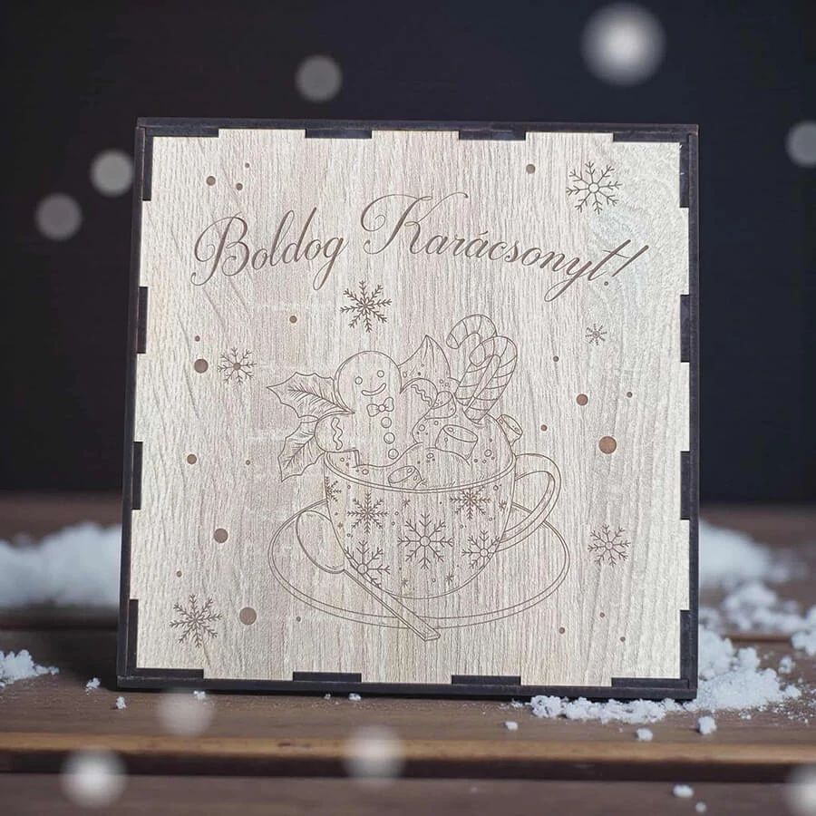 Az ünnepi asztal dísze nemcsak az étel, hanem az a szeretettel megterített hangulat is, amit a részletek adnak. Egy karácsonyi evőeszköz szett tökéletes választás, ha stílusosan és különleges módon szeretnéd feldobni az ünnepi vacsorát. A KreaShopAjándék.hu kínálatában elérhető Boldog Karácsonyt feliratú evőeszköz szett MDF anyagú, 19 x 19 x 4 cm-es díszdobozban, amely gravírozott mézi, kávé és hópihe mintákkal teszi még meghittebbé a csomagolást.
